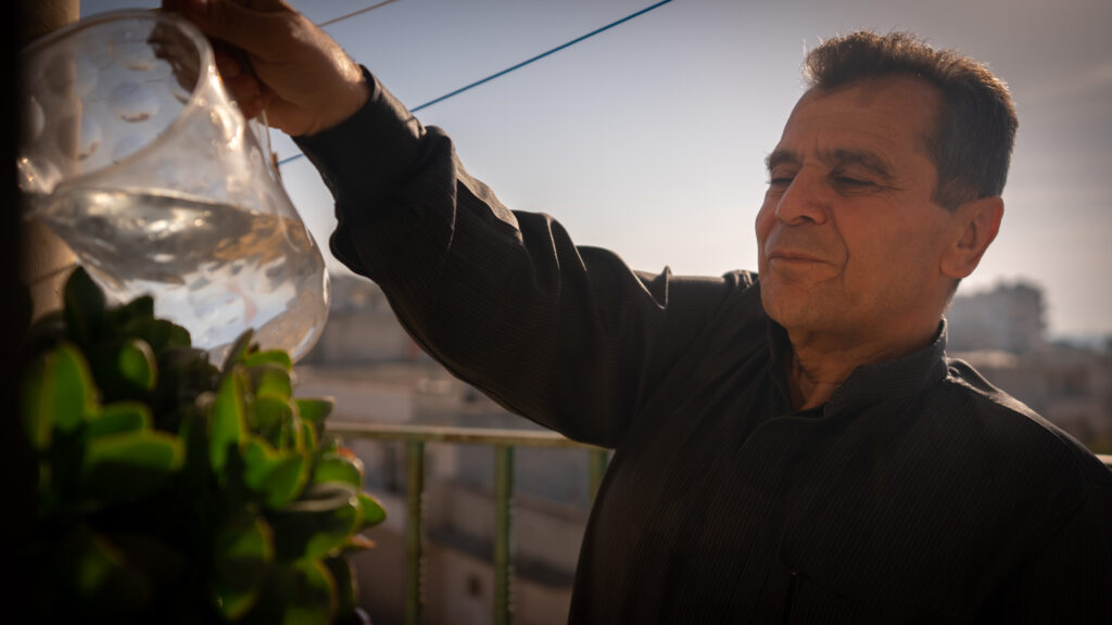 Tra loro c’è Ahmed, 58 anni. Rimasto solo dopo che la sua famiglia è fuggita dalla loro casa a Kafranbel, nella campagna di Maarat al-Numan, Ahmed ha iniziato a provare senso di oppressione e un forte dolore al petto.